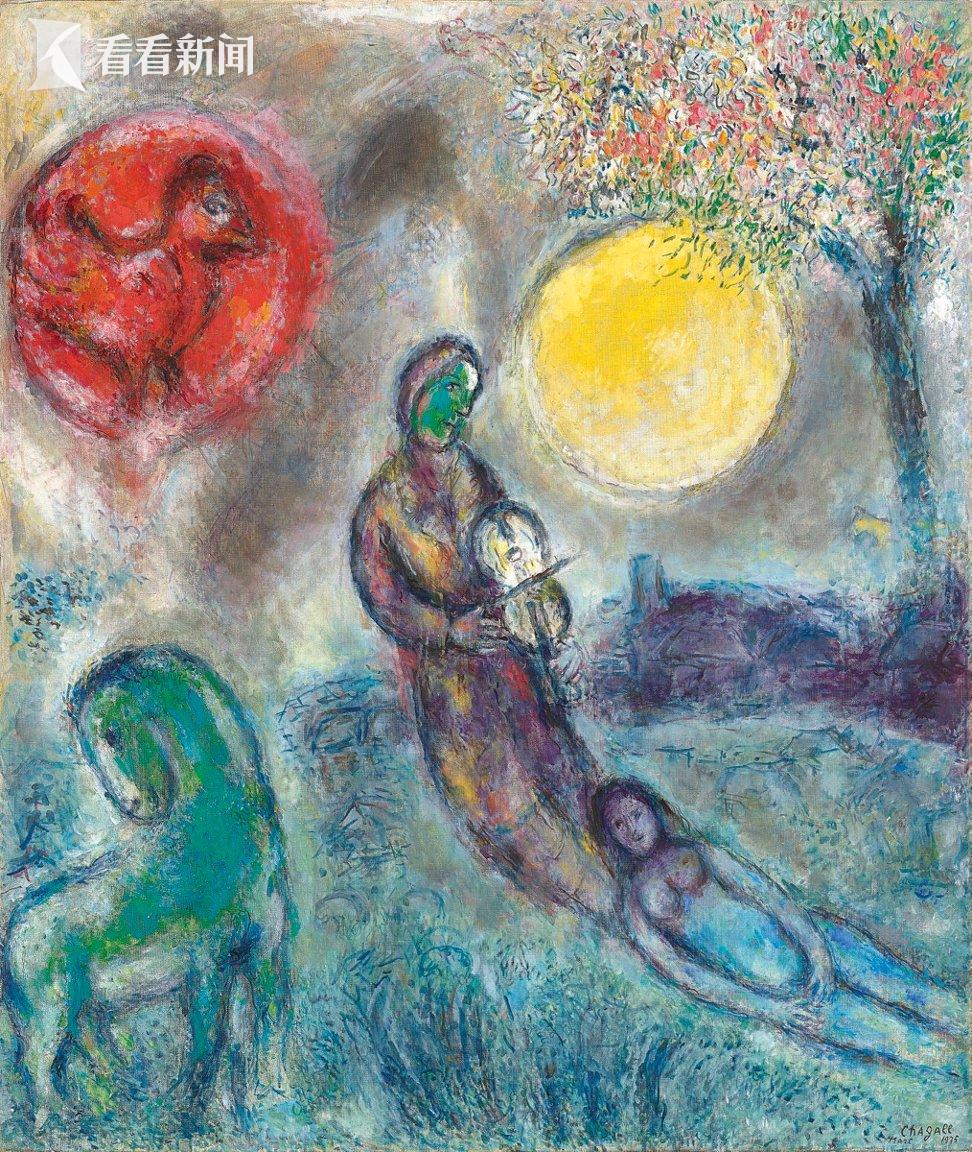 馬克·夏加爾的晚年巔峰之作——《田園牧歌》,描繪了綠馬、漂浮的戀人等夢幻視覺元素,承載著他對故鄉(xiāng)與愛情的深切回望,該作曾亮相1977年在巴黎盧浮宮舉辦的夏加爾回顧展,被譽為博物館級的抒情巨制。