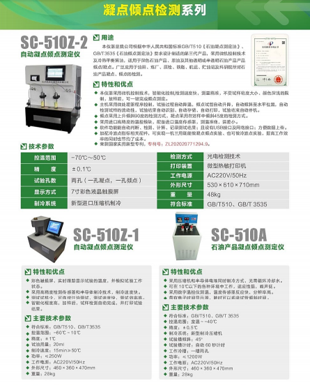 怎么選擇一臺合適的凝點傾點設(shè)備也是關(guān)鍵,思辰儀器有好幾款型號的機(jī)型供你選擇,SC-510A/SC-510B/SC-510Z-1/SC-510Z-2;從手動到自動,總有一款適合您的